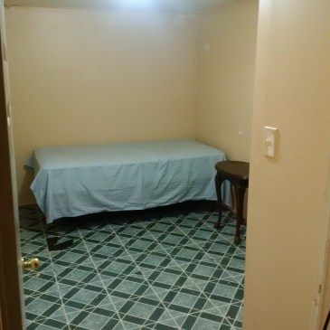 This enclosed room — only big enough for a queen-sized bed, a small drawer chest and a tiny closet — with utilities and a shared kitchen and bathroom, costs $150 per week or $600 per month.
